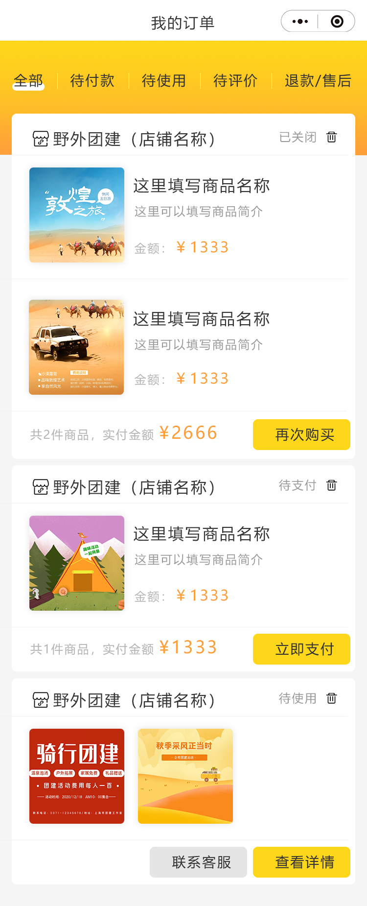 标题:拓展训练小程序案例、团建小程序案例、多商户小程序案例、多商户商城案例